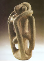 En sitios arqueológicos de esta tradición fueron halladas algunas de estas esculturas, cuyo nombre se debe a la postura corporal que adoptan los personajes representados: como en posición de efectuar algún tipo de rogativa.