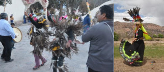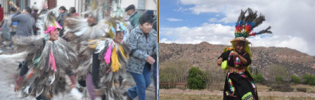 “Con los suris también me pasó algo parecido. Yo veía estas expresiones de chica. Vi los samilantes y vi las mujeres que cuarteaban acá en Humahuaca con la Virgen de la Candelaria. Siempre me llamó la atención, y cuando estaba leyendo libros e investigando, quedaba en eso el suri porque nunca había participado tan de cerca. Me fui a Buenos Aires y conozco a Norma Acosta, que es una mujer que empezó a trabajar con danzas ancestrales, necesitaba bailarinas y hacemos la representación del suri”.
