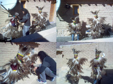 Digo “danzas” y acaso sea en parte impropio. “Era una misión, nuestra misión a la Virgen, una promesa, algo así”, me cuenta don Felipe Liquín, samilante purmamarqueño. “Yo he aprendido con su papá de ella, ya esos señores se han ido, entonces al poco tiempo me dicen: flaco, ¿no te animás vos a hacerte cargo?”, recuerda don Saturnino Rivera, que celebra de Abra Pampa. La celebración tiene, así, al menos dos características que la diferencian o encuadran dentro del conjunto del arte: una misión religiosa, y en todo caso comunitaria, y no se la ejerce por vocación o deseo, como podría pensarse de un bailarín, sino porque alguien, en la comunidad, debe hacerlo.
